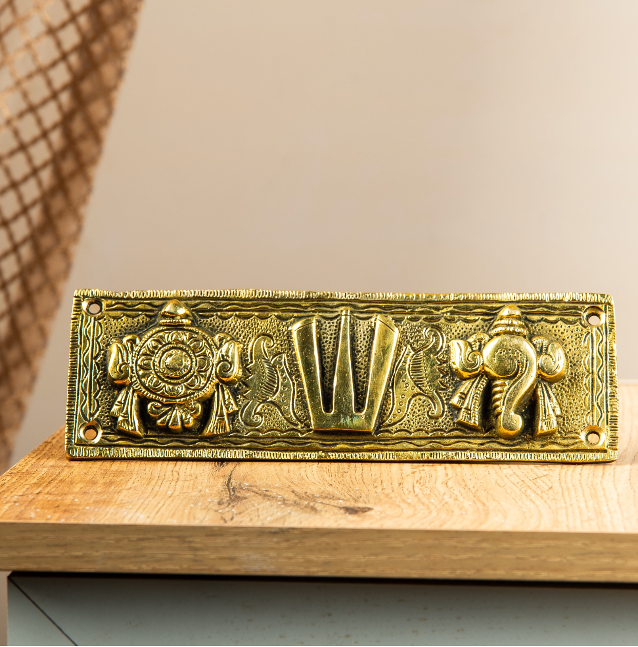 A Changu Chakra Namam Wall Panel is a sacred decor featuring the conch, discus, and divine symbol for your wall.