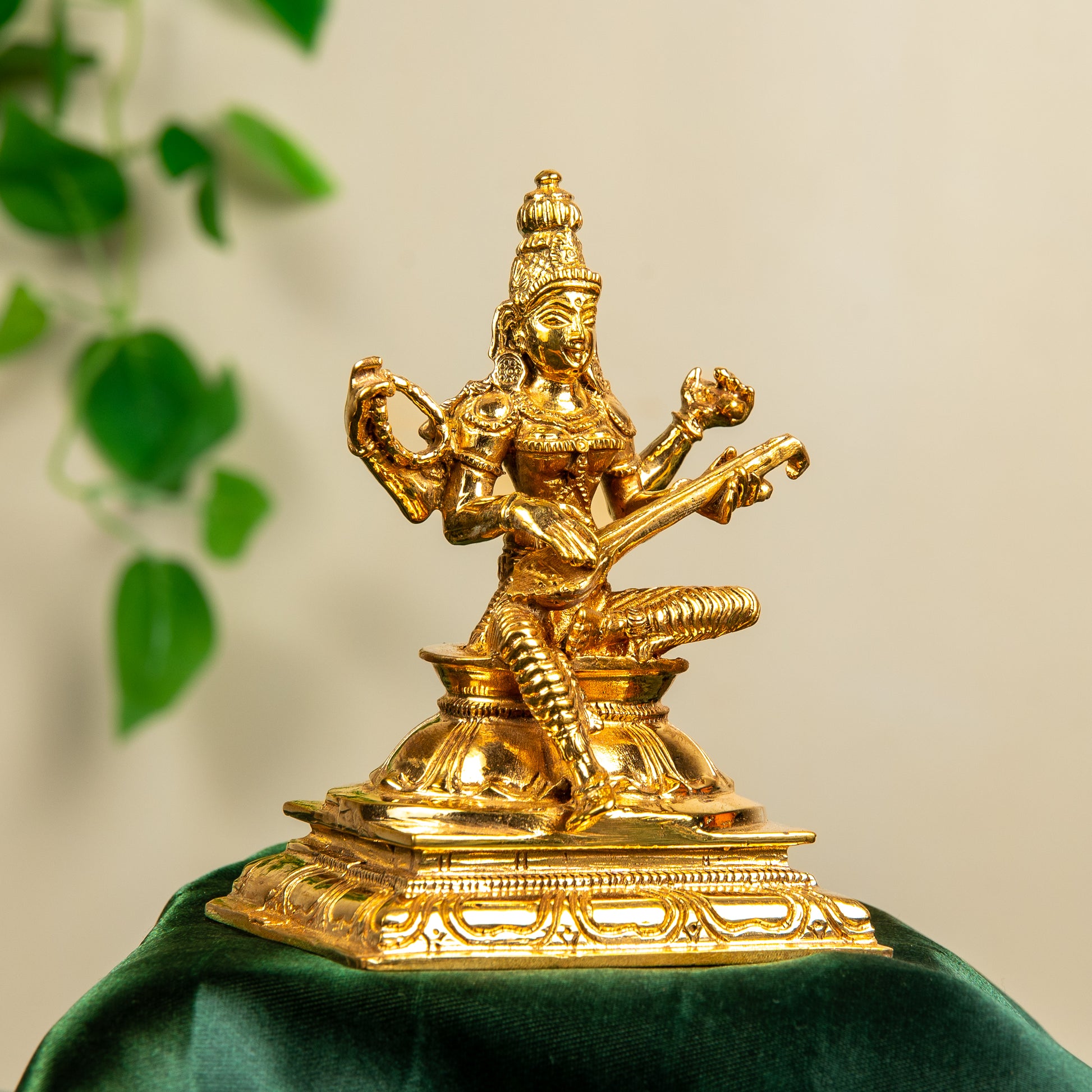 Handcrafted Bronze Saraswathi statue showcasing intricate detailing.