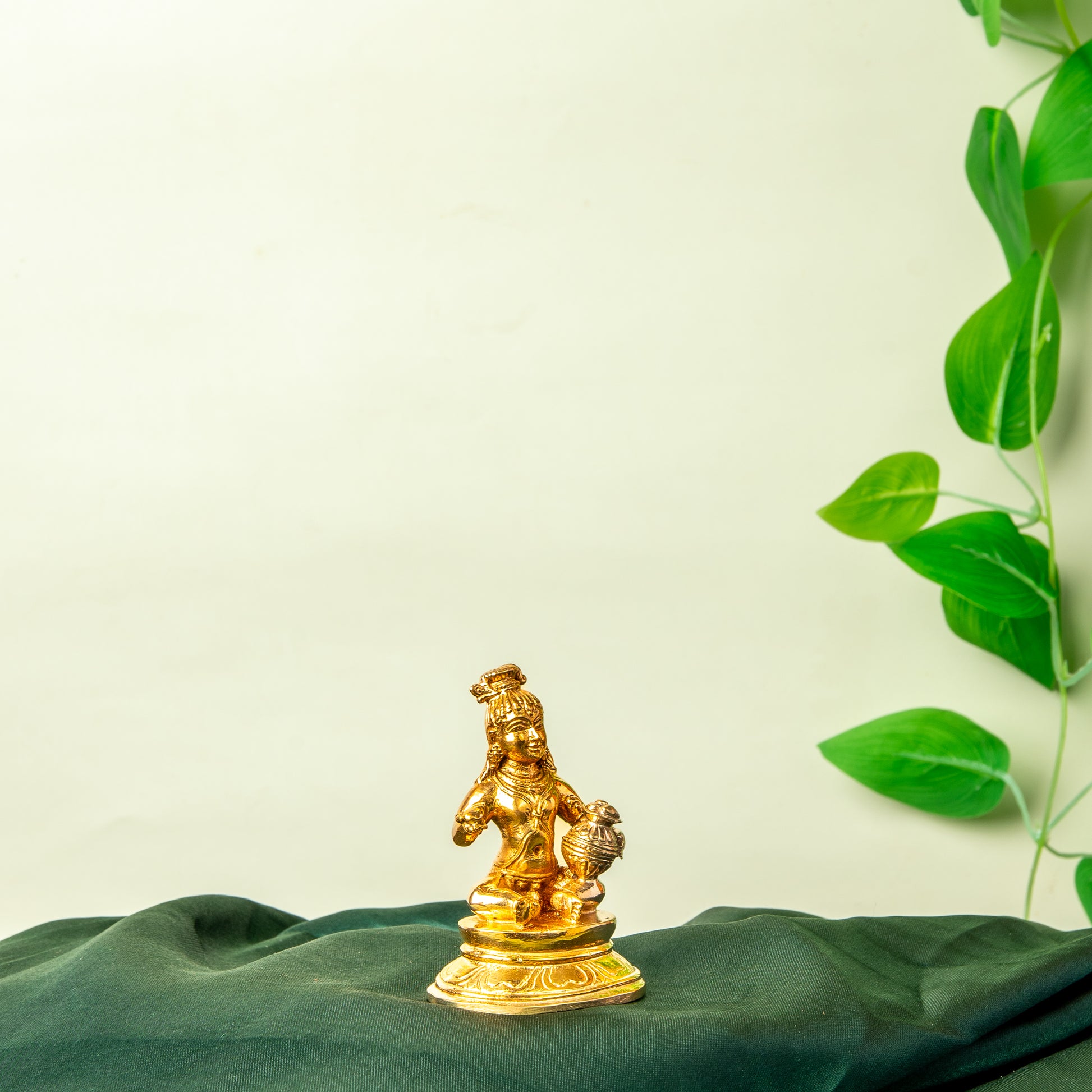 Beautifully handcrafted Bronze Vennai Thali Krishnar, capturing the divine charm of little Krishna enjoying butter — perfect for pooja and décor.