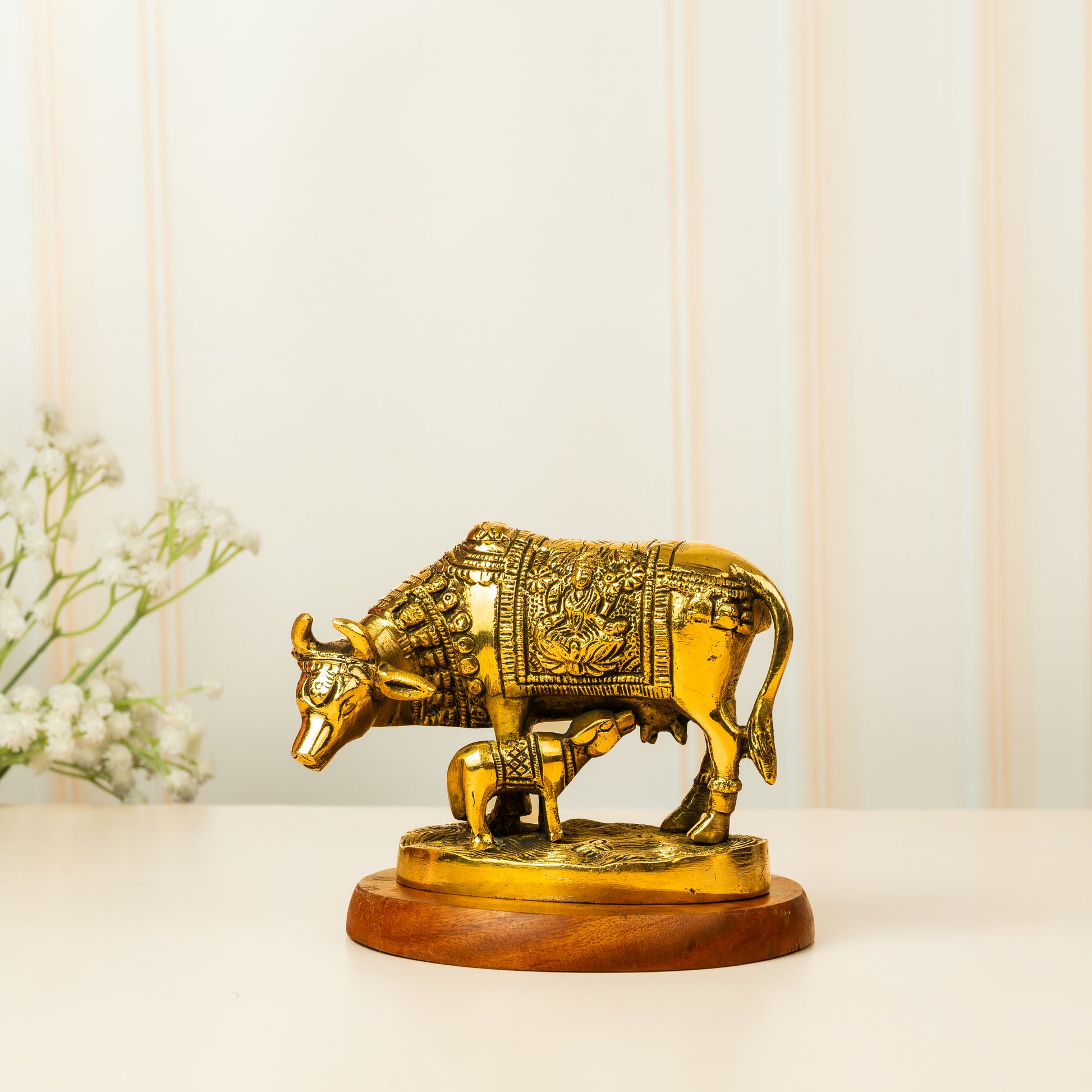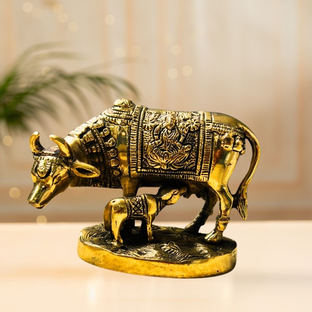This handcrafted Kamadhenu idol represents divine abundance, purity, and the nurturing power of the sacred wish-fulfilling cow in Hindu tradition.