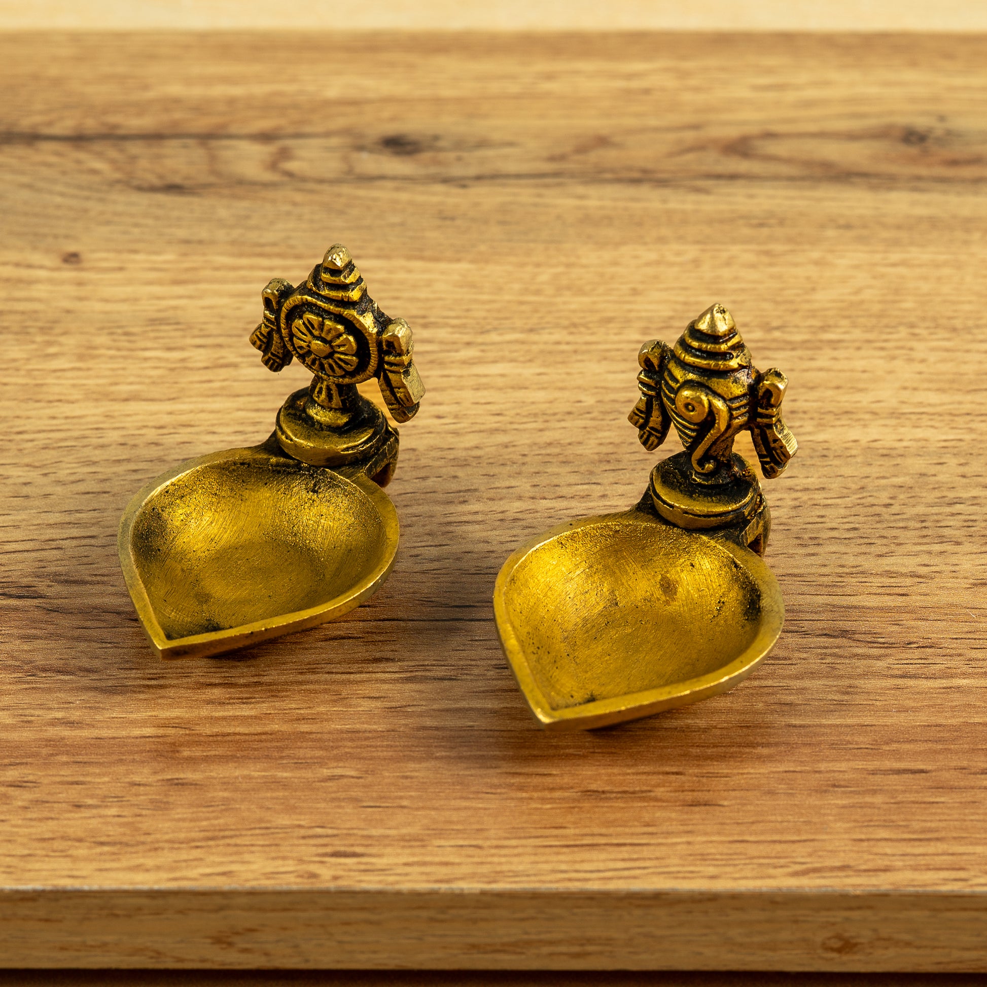 Handcrafted Small Sudharsana and Changu Vilakku — a divine symbol of prosperity, blessings, and light.